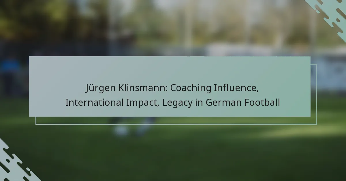 Jürgen Klinsmann’s coaching influence in football is marked by his innovative strategies and emphasis on player development. His approach has significantly shaped modern coaching practices, particularly in German football, where his legacy continues to resonate.